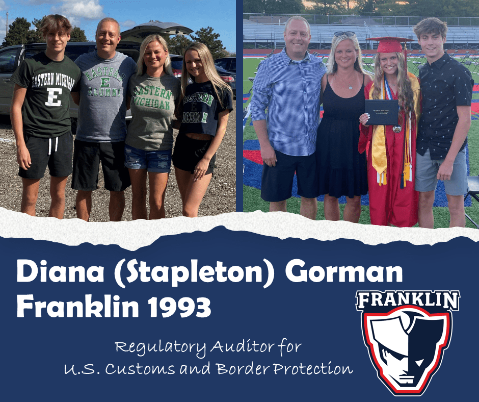 Diana went to Adams Elementary, Riley Middle School and Franklin High School graduating in 1993. After graduating from Eastern Michigan University with a bachelor’s degree in business administration – accounting in April of 1997, she started working for U.S. Customs as a Regulatory Auditor. At that time, U.S. Customs was a part of The Department of Treasury. As a Customs Auditor, she reviews the paperwork needed by a company to have their merchandise cross the border or come into the United States from overseas. She also makes sure that they are paying the correct amount of duties and fees to the Government and valuing their merchandise properly. Being in the Detroit Area, this branch mostly audits automotive companies. There are Regulatory Audit branches in 26 cities around the country. While working for Customs, Diana attended the University of Michigan Dearborn and got her master’s degree in finance. In 2005, U.S Customs changed its name and became U.S. Customs and Border Protection and is now part of The Department of Homeland Security. In June of this year, Diana was awarded for her 25th year of service to the U.S. Government.