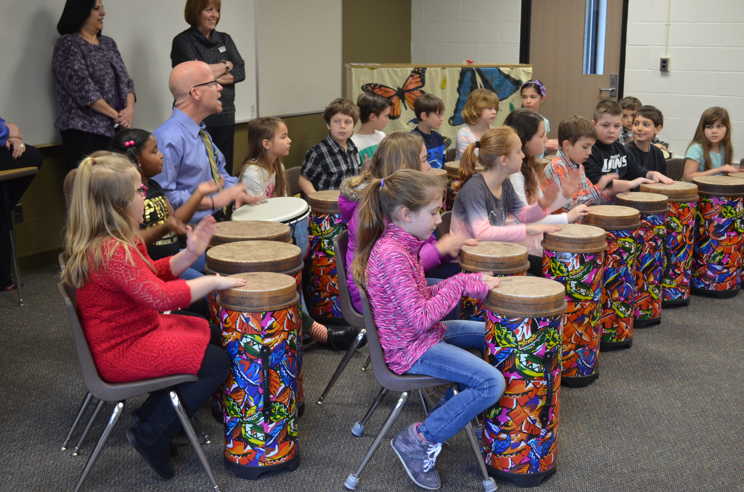 Students played tubano drums, which were purchased through two grants from the LPS Education Foundation. The World Drumming program, designed by Dr. Will Schmid, is incorporated into the K-4 curriculum.