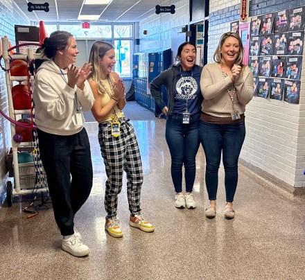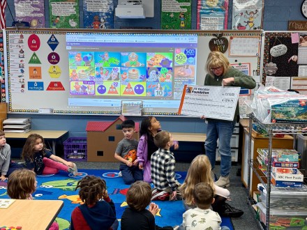 Mary Kay Hussey’s (Physical Education Teacher, Hayes Elementary) class finding out about her grant.