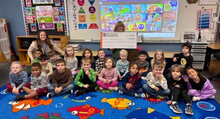 Natalie Wahl, Third/Fourth Grade Teacher, Webster Elementary, celebrates her grant with students